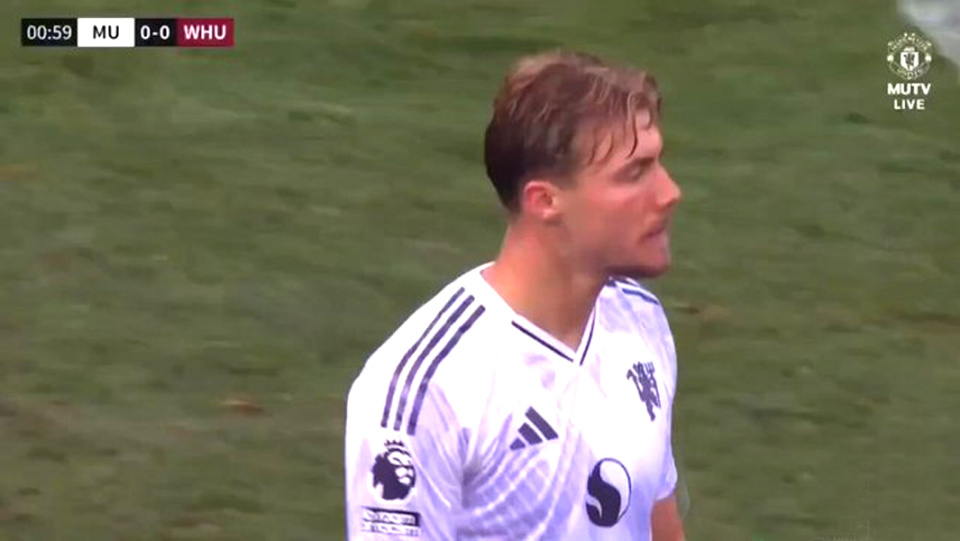 曼联2-1击败西汉姆联的比赛上半场,中锋霍伊伦德有几个灵光一现的瞬间。一开场,他展现了力量、速度和侵略性,接应布鲁诺·费尔南德斯的直塞,左脚射门击中门柱外侧。但他也有问题,另一次12码点附近的左脚射门,直接高出横梁,这让主教练鲁本·阿莫林非常沮丧。